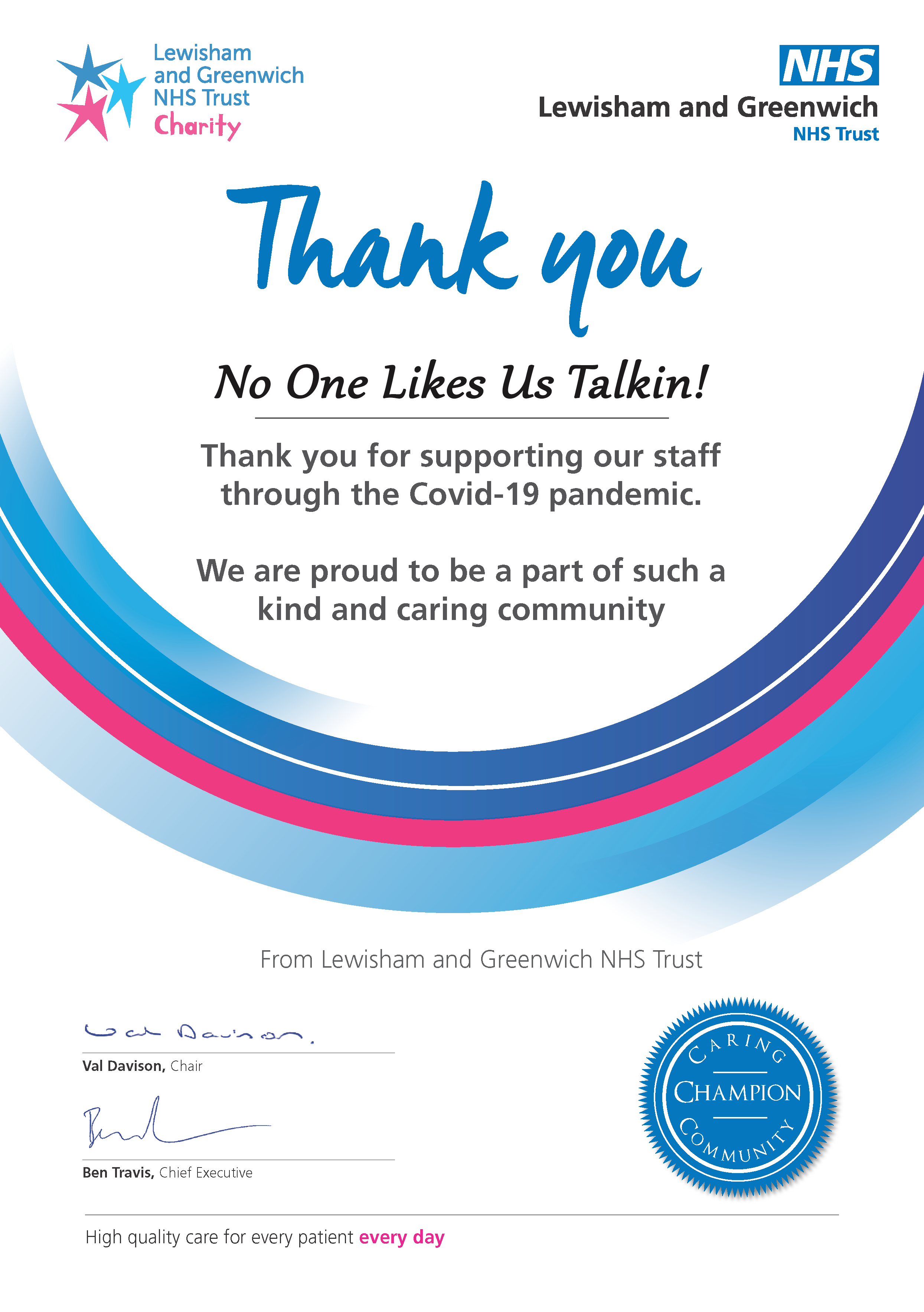 Throughout the COVID-19 pandemic, Millwall Community Trust (MCT) were supporting staff at Lewisham and Greenwich NHS Trust.