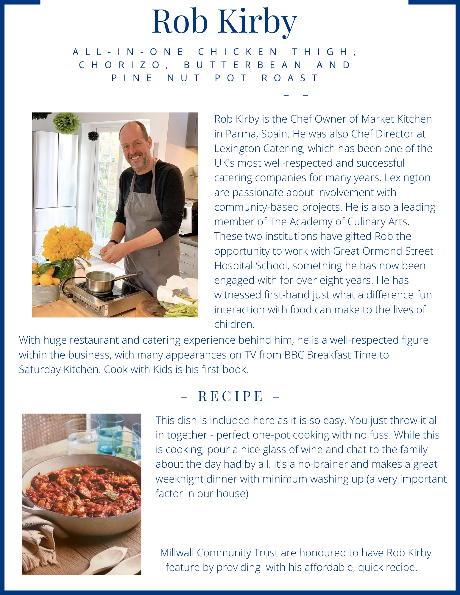 Sean Daly, CEO of the Community Trust, said: "We're excited to have another amazing chef feature, and take part in bringing forward healthy, affordable recipes to the community. At MCT we want to do what we can to improve people's health and lifestyles, and what better way than to start at home. We want to once again thank Debbie Julians who has helped put this together, and a huge thank you to Rob Kirby for being our next chef to feature with his delicious meal."