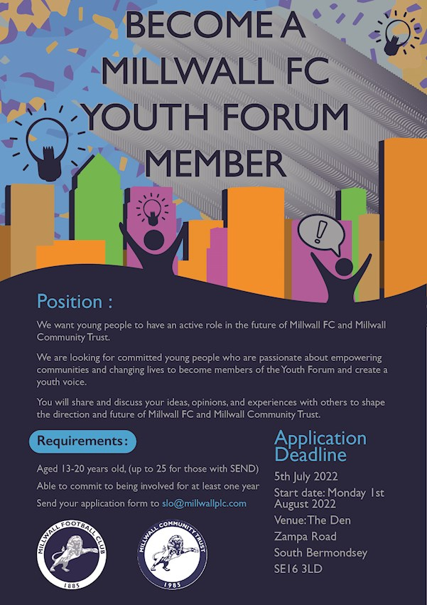 Young people will get the unique opportunity to shape the future of Millwall Football Club and Millwall Community Trust through a newly-formed Youth Forum.