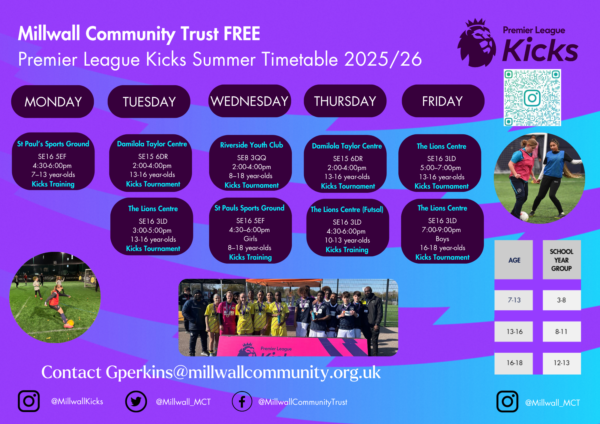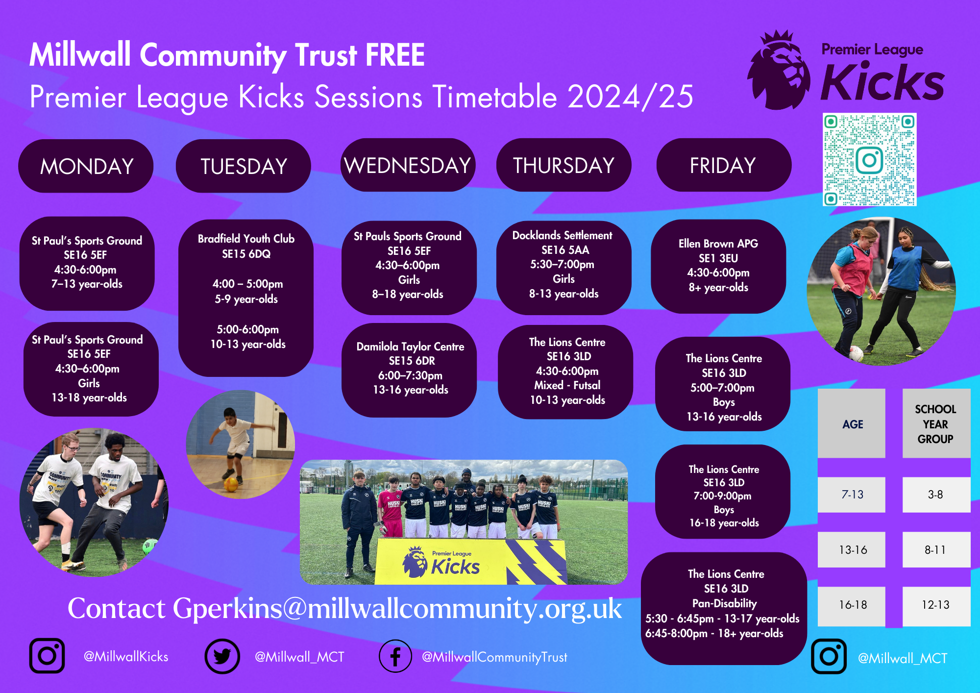 To find out more, contact gperkins@millwallcommunity.org.uk